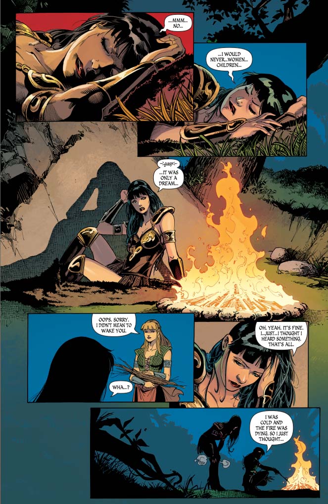 SKU: C72513026479402011 Rating: Teen + Cover A: David Finch UPC: 725130264794 02011 Cover B: Vicente Cifuentes UPC: 725130264794 02021 Writer: Meredith Finch Art: Vicente Cifuentes Genre: Fantasy Publication Date: March 2018 Format: Comic Book Page Count: 32 Pages ON SALE DATE: 3/14 Tension mounts as Xena and Gabrielle make their way to Athens and a reaction to an unexpected circumstance could separate our two unlikely companions just as their journey has begun.