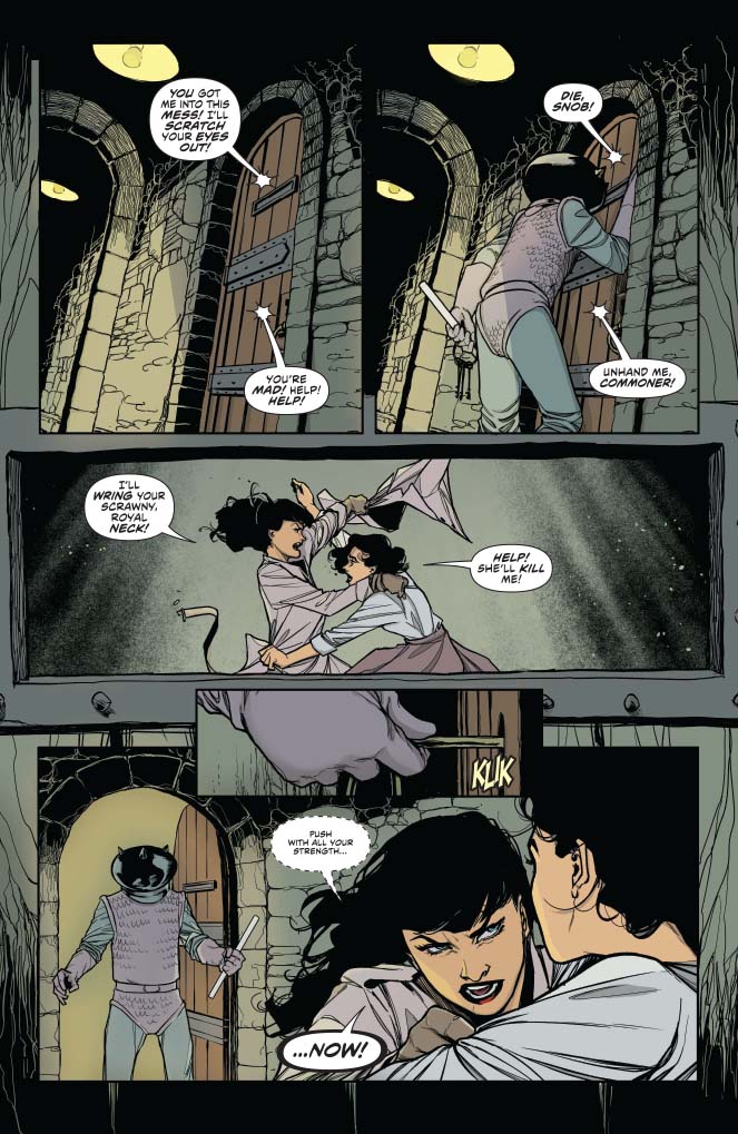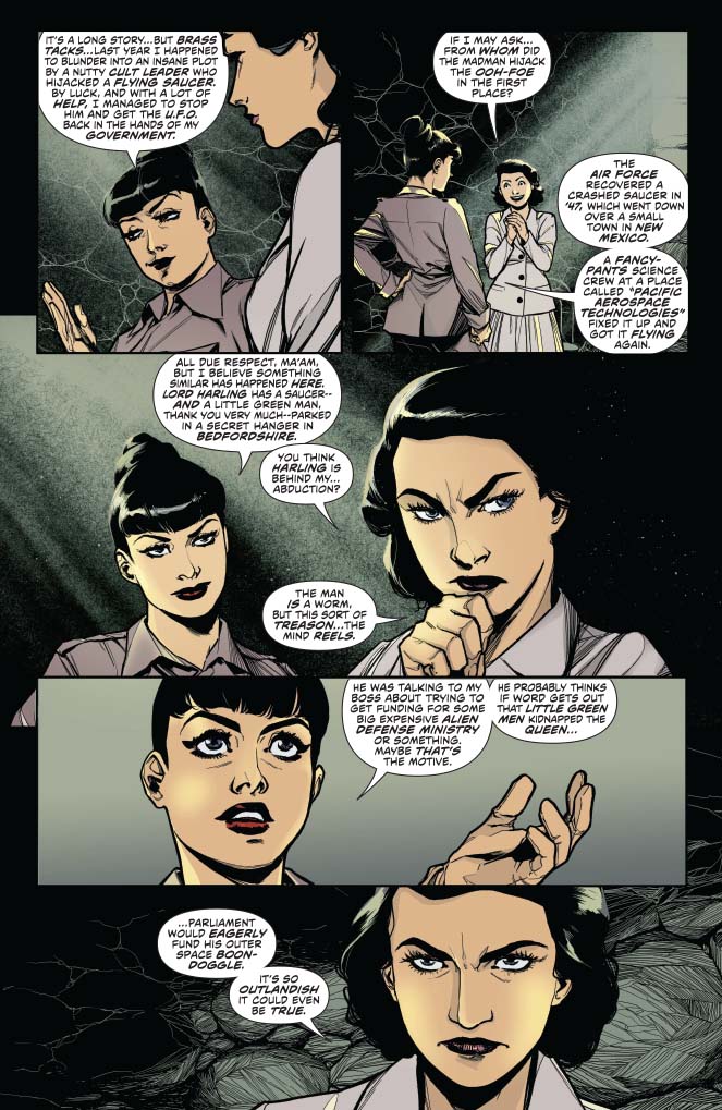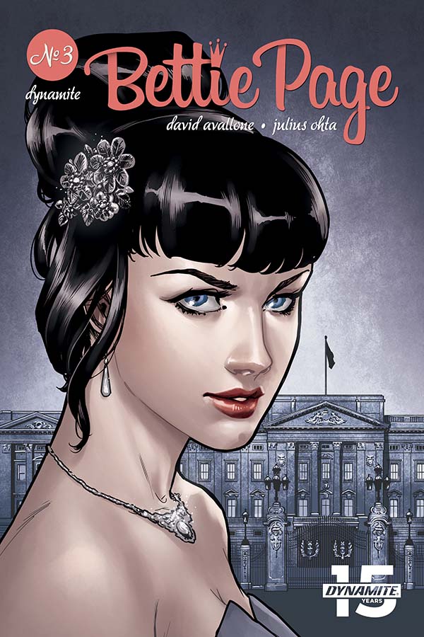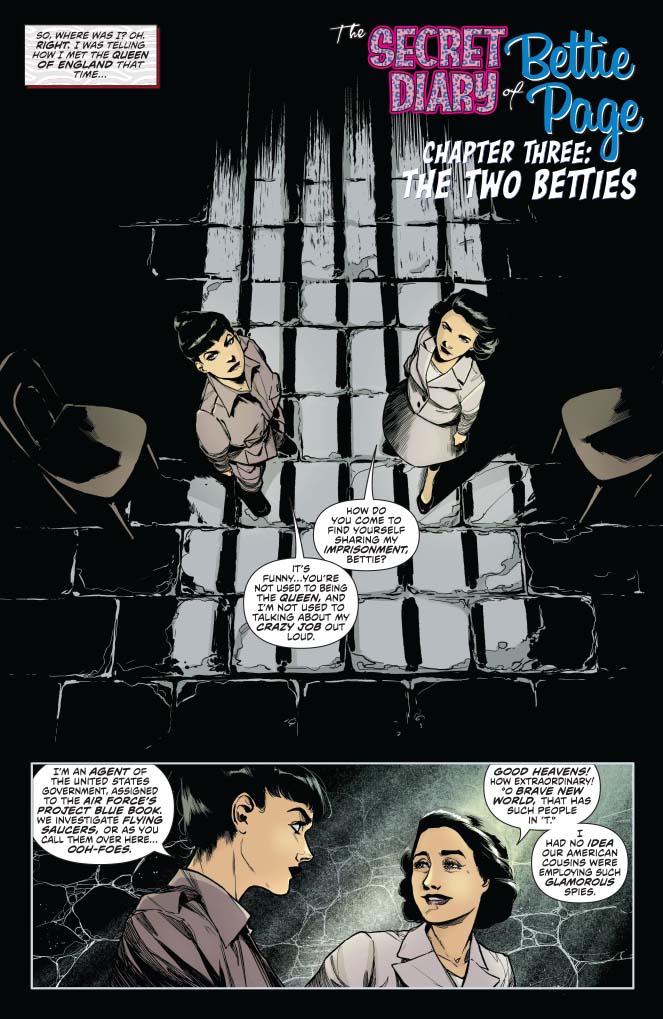 SKU: C72513027531803011 Rating: Teen + Cover A: John Royle UPC: 725130275318 03011 Cover B: Scott Chantler UPC: 725130275318 03021 Cover C: David Williams UPC: 725130275318 03031 Cover D: Julius Ohta UPC: 725130275318 03041 Cover E: Photo Cover UPC: 725130275318 03051 Writer: David Avallone Art: Julius Ohta Genre: Action/Adventure Publication Date: January 2019 Format: Comic Book Page Count: 32 Pages ON SALE DATE: 1/16/2019 Bettie and Lilibet, together again for the first time! Two queens from opposite sides of the tracks may be the only ones who can stop an alien invasion! Or is there an even deeper treachery afoot? If you loved THE CROWN but thought it needed more flying saucers, pick up the next exciting chapter of The Secret Diary of Bettie Page! David Avallone (Elvira: Mistress of the Dark) and Julius Ohta (Sherlock Holmes) take you back to a 1952 you never dreamed of, in the third installment of THE PRINCESS AND THE PIN-UP.