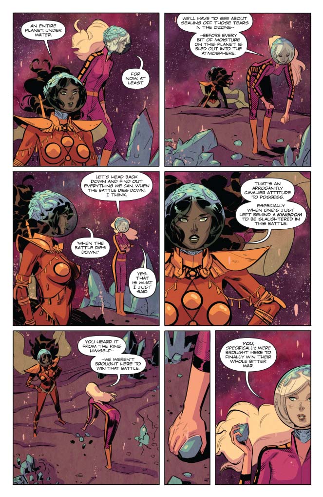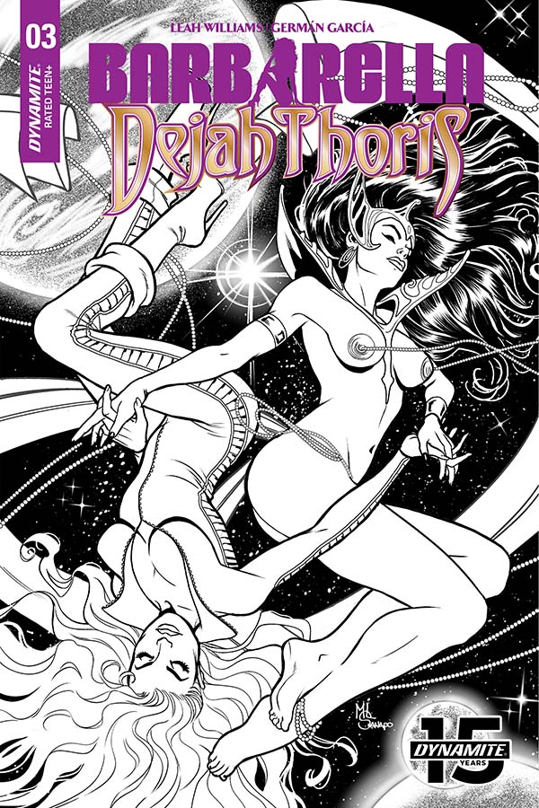 SKU: C72513027685803011 Rating: Teen + Cover A: Laura Braga UPC: 725130276858 03011 Cover B: Zach Hsieh UPC: 725130276858 03021 Cover C: Julius Ohta UPC: 725130276858 03031 Cover D: German Garcia UPC: 725130276858 03041 Cover E: Cosplay Cover UPC: 725130276858 03051 Writer: Leah Williams Art: German Garcia Genre: Science Fiction/Fantasy Publication Date: March 2019 Format: Comic Book Page Count: 32 Pages ON SALE DATE: 3/20/2019 Barbarella and Dejah Thoris make their way across the vast, endless waters of the mysterious water planet they find themselves marooned on. But after encountering all manner of never-before-seen creatures, they find there's not one but two dominant species here...and they're at war! And if that isn't enough to rattle our heroes, the discovery of just what planet they're on surely will!