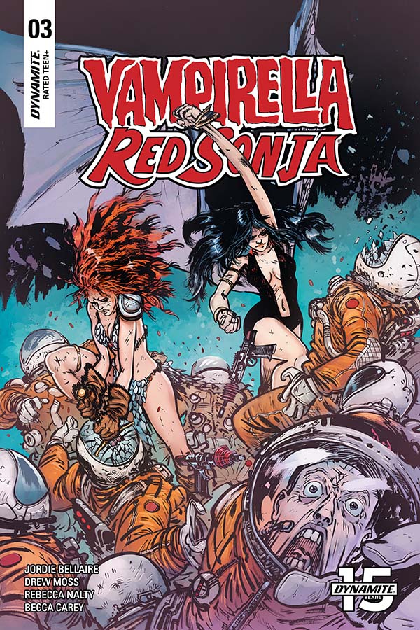 Price: $3.99 Shipping: Sold OutSKU: C72513028388703011 Rating: Teen + Cover A: Frank Cho & Sabine Rich UPC: 725130283887 03011 Cover B: Babs Tarr UPC: 725130283887 03021 Cover C: Daniel Warren Johnson & Mike Spicer UPC: 725130283887 03031 Cover D: Leonardo Romero & Jordie Bellaire UPC: 725130283887 03041 Cover E: Drew Moss "Then and Now" Variant UPC: 725130283887 03051 Writer: Jordie Bellaire Art: Drew Moss Genre: Action/Adventure Publication Date: November 2019 Format: Comic Book Page Count: 32 Pages ON SALE DATE: 11/6/2019 Hi! Here's what's going on: VAMPIRELLA found out some dudes're doing experiments on vampires and she is piiiiiiiiiiised. RED SONJA is using this as an excuse to beat the holy hell outta a buncha solider types. Many punches, many explosions, and somehow, at some point, Sonja punches through a wall. Find out how someone can punch through a wall, courtesy of JORDIE BELLAIRE (Buffy The Vampire Slayer) and DREW MOSS (Star Wars)!