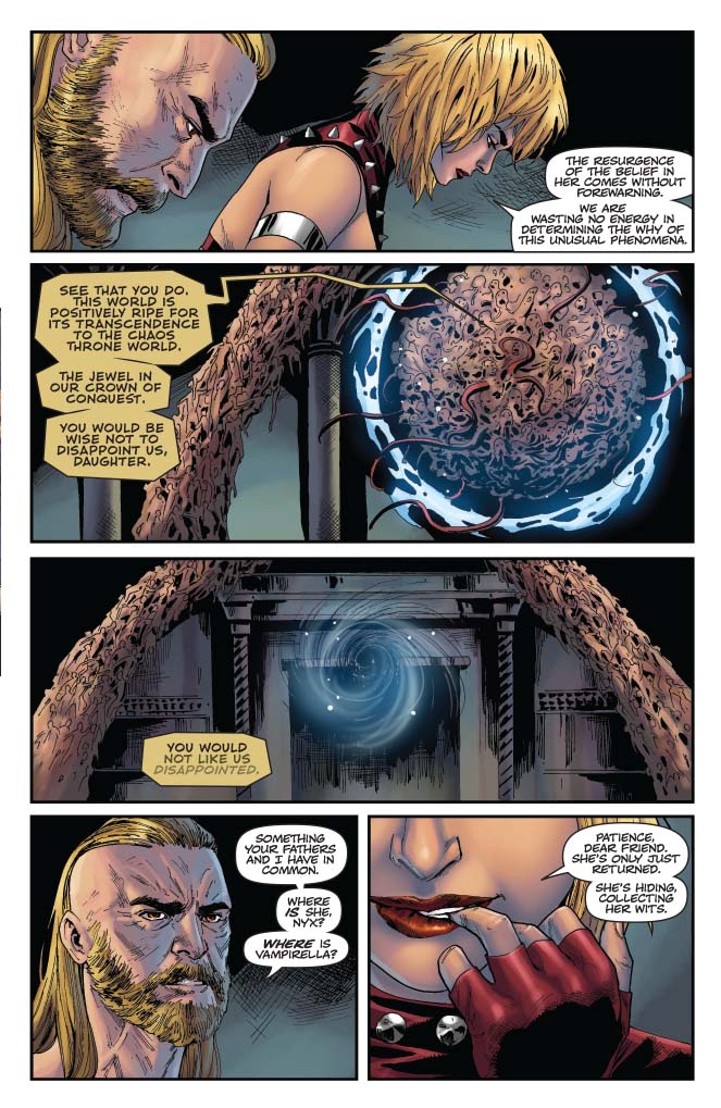 SKU: C72513028475404011 Rating: Teen + Cover A: Lucio Parillo UPC: 725130284754 04011 Cover B: Ben Oliver UPC: 725130284754 04021 Cover C: Buzz UPC: 725130284754 04031 Cover D: Ali Chappel Cosplay Variant UPC: 725130284754 04041 Writer: Tom Sniegoski Art: Michael Sta. Maria Genre: Horror Publication Date: January 2020 Format: Comic Book Page Count: 32 Pages ON SALE DATE: 1/8/2020 Humanity has raised their greatest hope from the dead, but will Pendragon and the rest of the survivor's be able to control the beast that they have unleashed? This issue: Vampirella and Pendragon united! Nyx faces tough questions about her handling of things from the Chaos Lords! Hemorrhage and Nyx lay a trap for Vampirella! And it's all heading to the fight between Hemorrhage and Vampirella you've been waiting for.