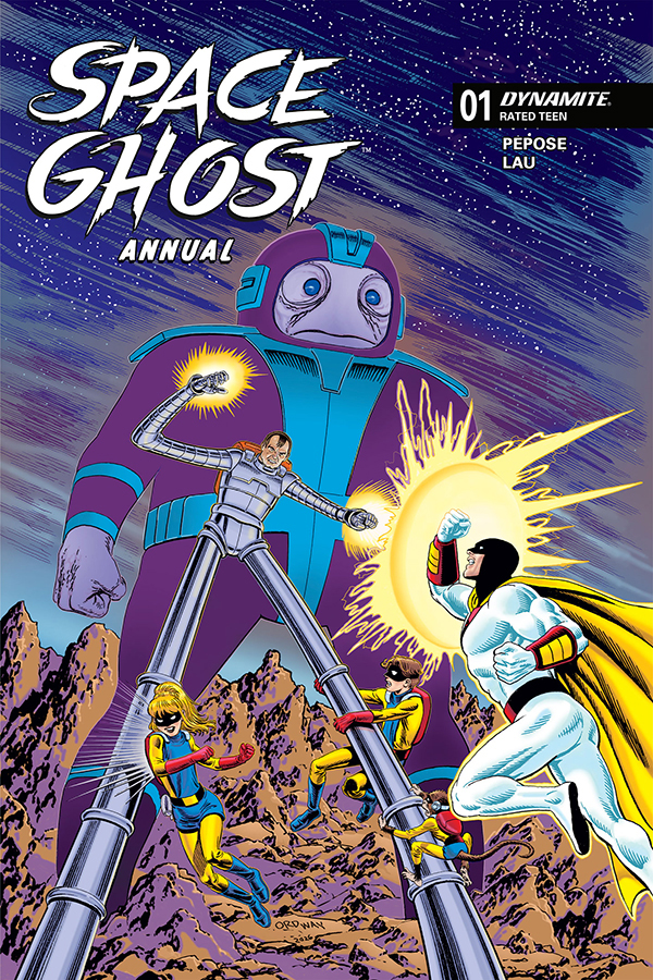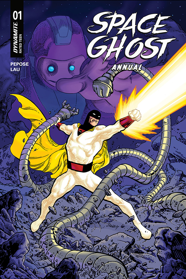 Price: $5.99 Shipping: July, 2026SKU: C72513035568302011 Rating: Teen Cover A: Jonathan Lau UPC: 72513035568302011 Cover B: Bjorn Barends UPC: 72513035568302021 Cover C: Tom Raney UPC: 72513035568302031 Cover D: Jerry Ordway UPC: 72513035568302041 Genre: Science Fiction / Adventure Writer: David Pepose Artist: Jonathan Lau Publication Date: July, 2026 Format: Comic Book Page Count: 40 ON SALE DATE: 7/15/2026 An all-new SPACE GHOST ANNUAL is here! As Space Ghost and the Twins mourn their recent losses, they find themselves trying to stop a dangerous heist pulled by the master thief known as Magnus and his mysterious, reality-warping alien! Can they discover the deadly secret behind Magnus's mind-bending crime spree before it's too late, or will the enigmatic alien bring untold destruction to the galaxy? And can Space Ghost forgive himself before the next deadly menace arrives to threaten the galaxy? This special issue also serves as a prelude to the next Space Ghost adventure, as the guardians of the galaxy prepare to meet...the Herculoids! Featuring covers by legendary artists Jerry Orway, Tom Raney, interior artist Jonathan Lau, and returning SPACE GHOST cover artist Bjorn Barends!