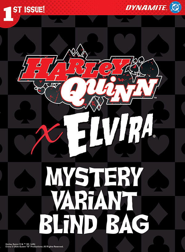 Price: $10.00 Shipping: Available Soon!SKU: C72513035710601771 Shipping: October, 2025 Rating: Teen+ Cover ZD: Blind Bag Variant UPC: 72513035710601771 Writers: Amanda Conner, Jimmy Palmiotti Artists: Juan Samu, Amanda Conner Genre: Superhero/Horror/Humor Publication Date: October, 2025 Format: Comic Book Page Count: 32 ON SALE DATE: 10/8/25 To celebrate the greatest team-up in comics history, DC and Dynamite are thrilled to offer retailers and fans a special MYSTERY BLIND BAG VARIANT for the first issue of HARLEY QUINN X ELVIRA! Each Mystery Blind Bag will contain one unique limited-edition copy of this historic first issue drawn at random from more than a dozen different cover variants made exclusively for this offering - including special foil editions! With art by Amanda Conner, Mark Spears, Chad Hardin, and more, fans will love these blind bags! The HARLEY QUINN X ELVIRA #1 COVER ZD MYSTERY BLIND BAG is priced at $10.00 - don't miss this chance to bring some mystery back into Spooky Season! PLEASE NOTE: The number of Blind Bags is limit