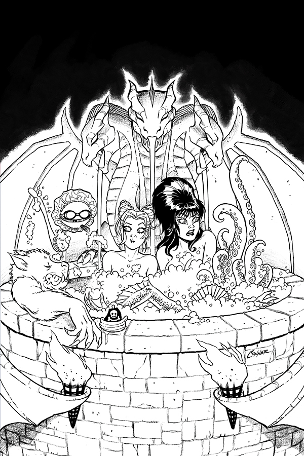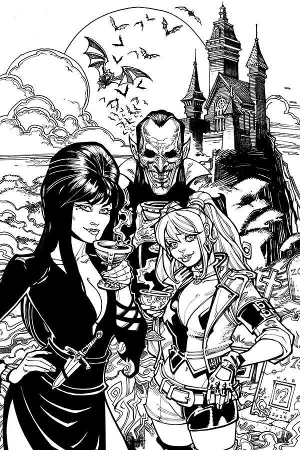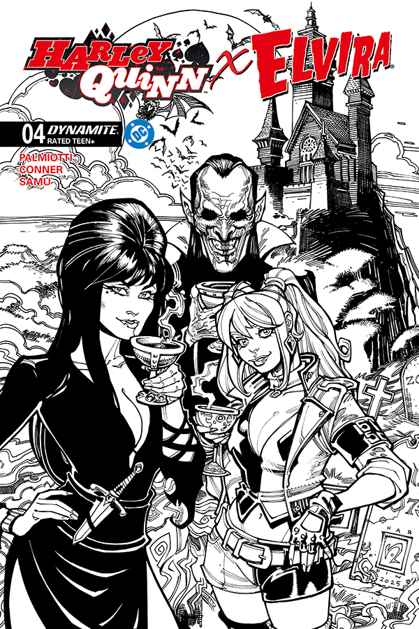 Price: $4.99 Shipping: January, 2026SKU: C72513035710604011 Rating: Teen+ Cover A: Amanda Conner Hot Tub UPC: 72513035710604011 Cover B: Chad Hardin UPC: 72513035710604021 Cover C: Joseph Michael Linsner UPC: 72513035710604031 Cover D: Ben Caldwell UPC: 72513035710604041 Writers: Amanda Conner, Jimmy Palmiotti Artists: Juan Samu, Amanda Conner Genre: Superhero/Horror/Humor Publication Date: January 2026 Format: Comic Book Page Count: 32 ON SALE DATE: 1/7/26 OUT OF THE FRYING PAN AND INTO THE FIRE! With things getting too hot to handle back in Brooklyn, Elvira and Harley abscond to the cooler climes of Transylvania to crash with one of Elvira's best buddies in his tastefully appointed castle. But despite their reputation as old-school hedonists, the Count's already-invited guests don't much care for this pair of interlopers - and they've got some decidedly medieval ideas for how to deal with party crashers! Harley fan club co-founders AMANDA CONNER and JIMMY PALMIOTTI go continental in Harley Quinn X Elvira #4, with Conner once again serving up double helpings of steaming-hot covers (as well as adding flavor to JUAN SAMU's tasty interior art) along with JOSEPH MICHAEL LINSNER, CHAD HARDIN, BEN CALDWELL, and a special MYSTERY BLIND BAG featuring exclusive variants! Please Note: The number of Blind Bags is limited, and allocations may occur.