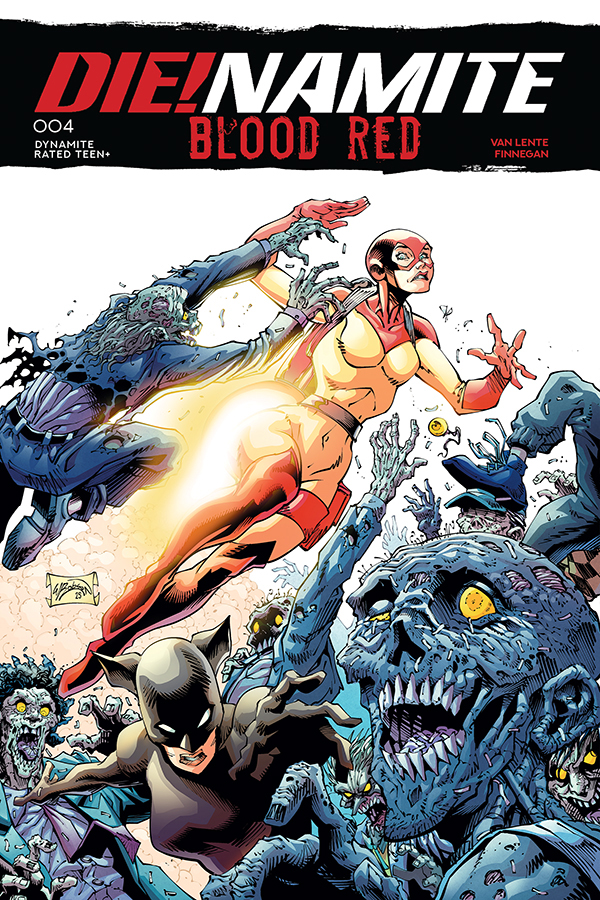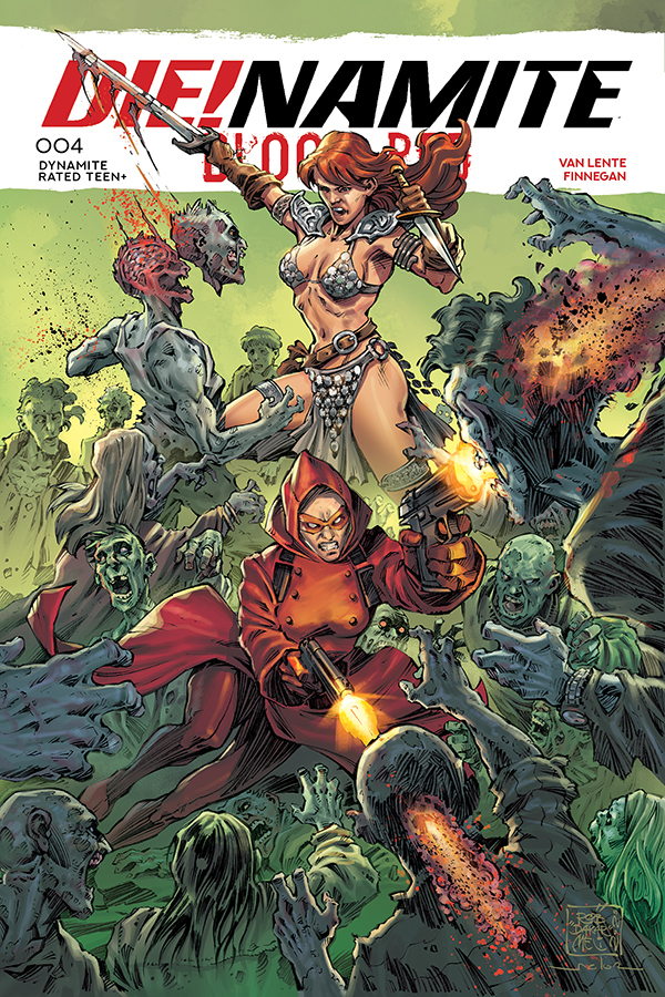 Price: $4.99 Shipping: January, 2026SKU: C72513035985804011 Rating: Teen+ Cover A: EJ Su UPC: 72513035985804011 Cover B: Roberto Meli UPC: 72513035985804021 Cover C: Emilio Pilliu UPC: 72513035985804031 Cover D: Will Robson UPC: 72513035985804041 Writer: Fred Van Lente Artist: Marco Finnegan Genre: Horror/Action Publication Date: January 2026 Format: Comic Book Page Count: 32 ON SALE DATE: 1/14/26 IT'S A MARTIAN STANDOFF! With Sonja leading the way through the sewers of Sin City, Purgatori's strike team of Miss Fury, Vampirella, and Dejah Thoris are poised to capture the rogue Kaldanian scientist Taak and force him to divulge the cure for the Deadmen plague. But things take a turn for the traitorous when Vampi corners Taak in his Hoover Dam lair and gets a telepathic earful about both his and Dejah's true intentions! Two-fisted ink-slingers FRED VAN LENTE and MARCO FINNEGAN lay out the good, the bad, and the ugly in Die!namite: Blood Red #4 - featuring quick-draw covers by EJ SU, ROBERTO MELI, EMILIO PILLIU, and WILL ROBSON!