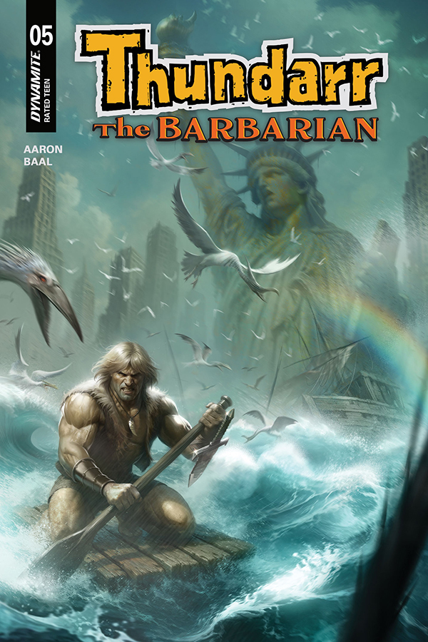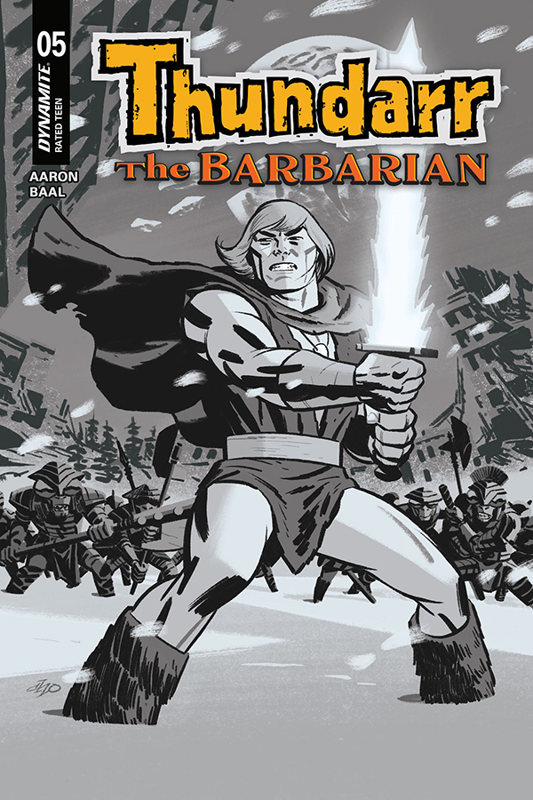 Price: $4.99 Shipping: May, 2026SKU: C72513036251305011 Rating: Teen Cover A: Michael Cho UPC: 72513036251305011 Cover B: Francesco Mattina UPC: 72513036251305021 Cover C: Bjorn Barends UPC: 72513036251305031 Cover D: Joseph Michael Linsner UPC: 72513036251305041 Genre: Science Fiction/Adventure Writer: Jason Aaron Artist: Kewber Baal Publication Date: May, 2026 Format: Comic Book Page Count: 32 ON SALE DATE: 5/27/2026 Return with us now to... 1994 as our heroes journey to the past in their attempts to battle and defeat the Council of Wizards! The future is now! The future is Thundarr! Written by Jason Aaron and drawn by Kewber Baal (Vampirella: Armageddon, Elvira), along with all-star covers by Michael Cho, Francesco Mattina, Bjorn Barends and Joseph Michael Linsner!