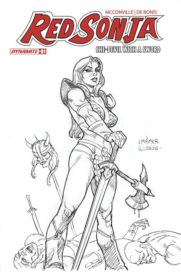 Price: $50.00 Shipping: May, 2026SKU: C72513036484501101 Rating: Teen+ Cover J: Joseph Michael Linsner UPC: 72513036484501101 Genre: Sword and sorcery Writer: Rory McConville Artist: Pablo de Bonis Publication Date: May, 2026 Format: Comic Book Page Count: 32 ON SALE DATE: 5/6/2026 . "Know also, 'o prince, that in the self-same days that the Cimmerian did stalk the Hyborian Kingdoms, one of the few swords worthy to cross with his was that of Red Sonja, warrior-woman out of majestic Hyrkania." A bold new series, featuring the Dynamite Debut of writer Rory (King Spawn) McConville and artist Pablo de Bonis! Red Sonja must protect the last descendent of an ancient bloodline from a revolutionary movement determined to reshape all of Hyboria! Featuring the debut of the Cult of the Rising Sun and several new friends and foes of the She-Devil with a Sword! Be there! Cover artists include: Stuart Sayger, Lucio Parillo, Joseph Michael Linsner, Mike Rooth and a stunning piece of cosplay by Woman of Wonder plus a special PREMIUM MYSTERY BLIND BAG containing three limited editions of the issue selected randomly from a range of covers exclusive to this offering! Please Note: The number of Blind Bags is limited, and allocations may occur. Rory McConville is an Irish writer living in London. He has written several series for 2000 AD including Judge Dredd and Department K, and also co-created the historical graphic novel Big Jim: Jim Larkin and the 1913 Lockout. His most recent work includes the graphic novel Write It In Blood for Image Comics along with King Spawn, also for Image Comics.