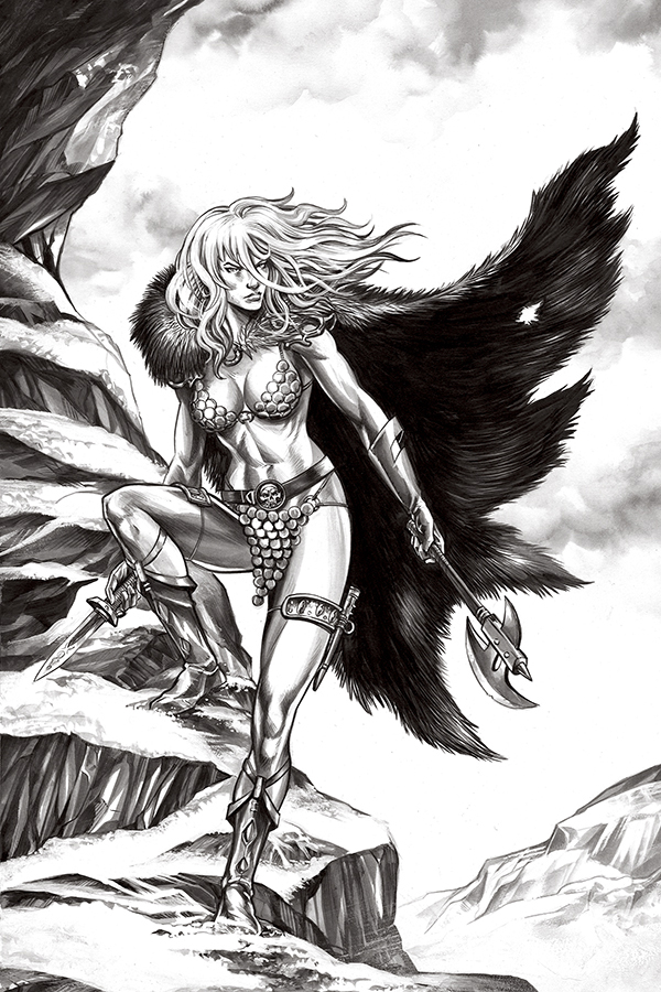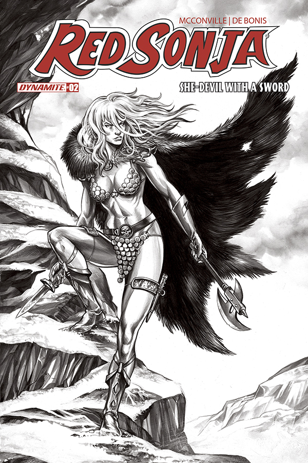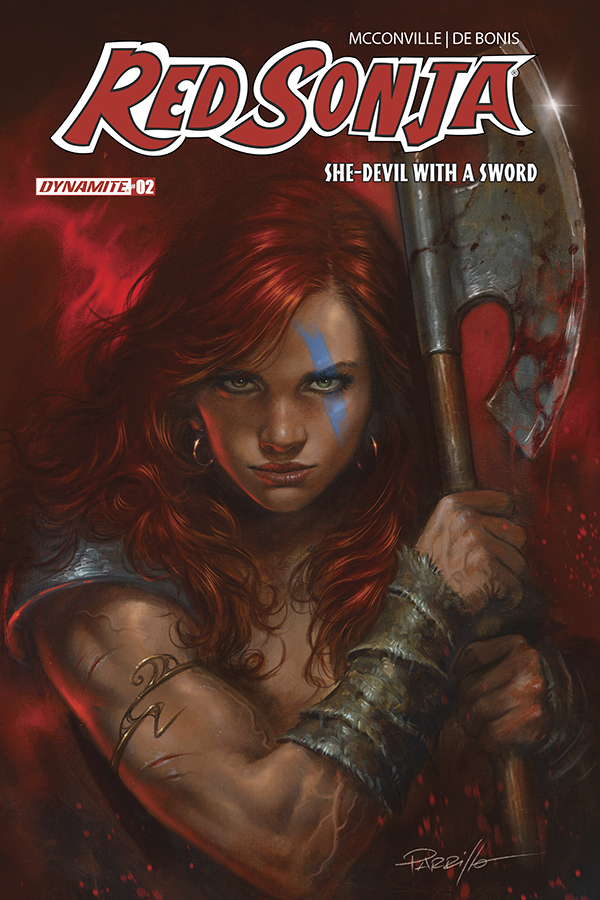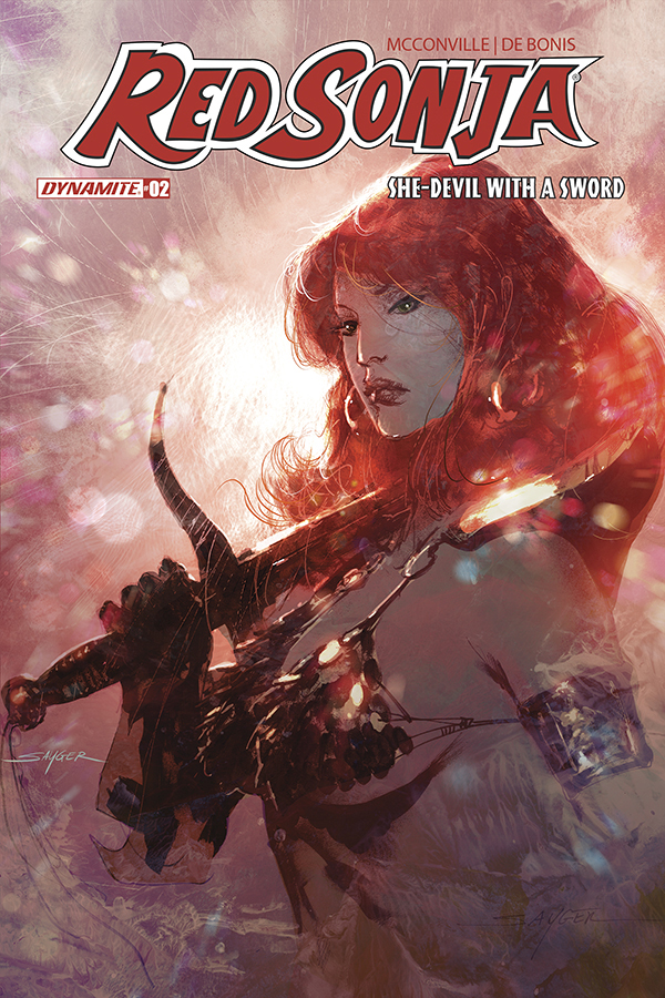 Price: $4.99 Shipping: June, 2026SKU: C72513036484502011 Rating: Teen+ Cover A: Stuart Sayger UPC: 72513036484502011 Cover B: Lucio Parrillo UPC: 72513036484502021 Cover C: Joseph Michael Linsner UPC: 72513036484502031 Cover D: Mike Rooth UPC: 72513036484502041 Cover E: Cosplay - Dare Taylor UPC: 72513036484502051 Genre: Sword and sorcery Writer: Rory McConville Artist: Pablo de Bonis Publication Date: June, 2026 Format: Comic Book Page Count: 32 ON SALE DATE: 6/3/2026 Dynamite's bold new take on Red Sonja continues, courtesy of writer Rory McConville (King Spawn) and rising star artist Pablo de Bonis! Red Sonja must protect the last descendent of an ancient bloodline from a revolutionary movement determined to reshape all of Hyboria! After the events of last issue, Sonja has lost her friend and ally and must now take care of his charge, Aretha - a young girl sought by the deadly Rising Sun cult! Together, the duo head to Khorshemish, where they seek know-ledge, but find more danger! Cover artists include Stuart Sayger, Lucio Parrillo, Joseph Michael Linsner, and Mike Rooth, plus a stunning Cosplay cover by Dare Taylor!
